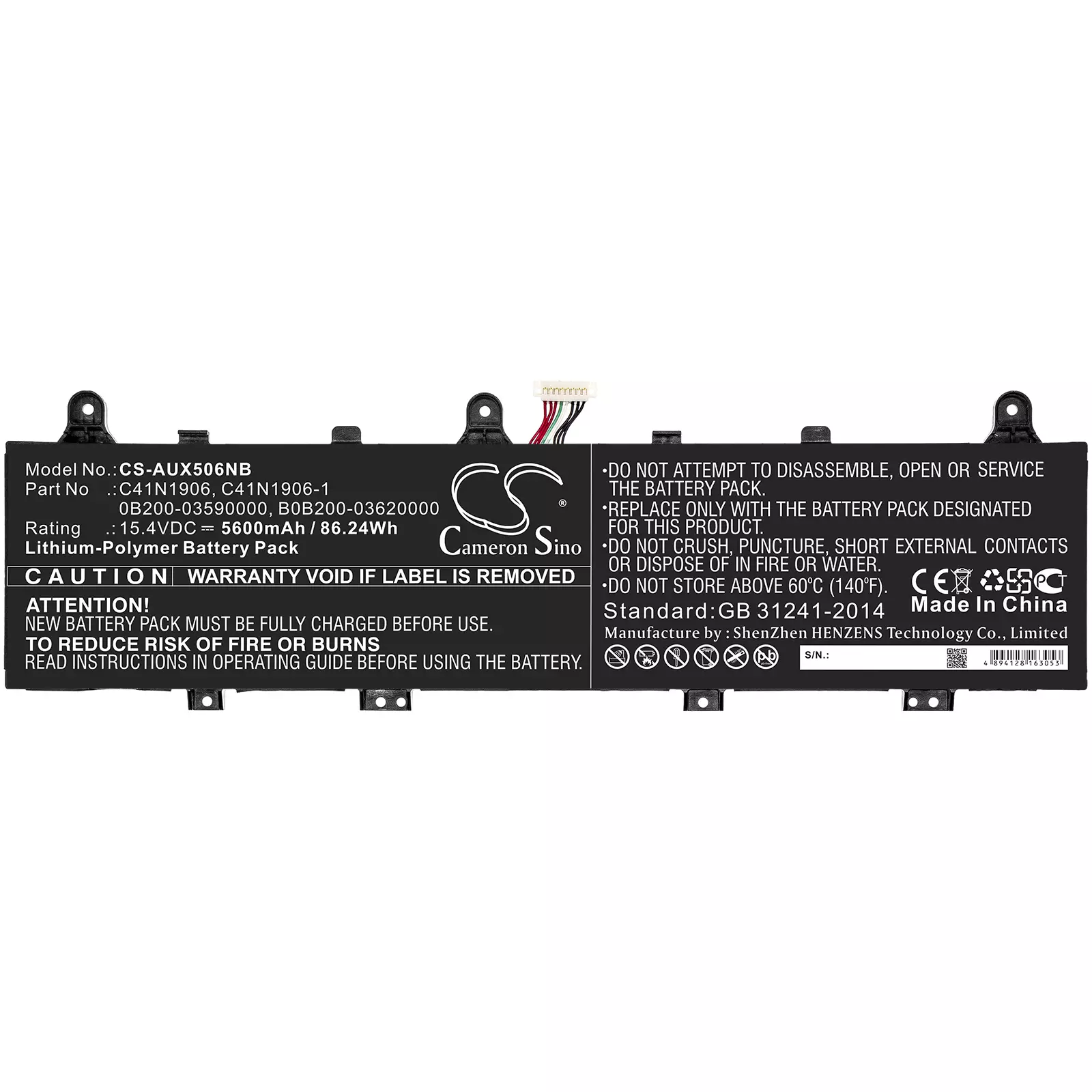 ASUS 15.4V 5600mAh Li-Polymer tarvikeakku (Cameron Sino) on erinomainen vaihtoehto alkuperäiselle akulle.