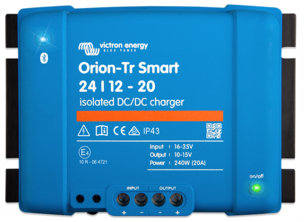 Orion-Tr Smart DC-DC -laturi on ammattikäyttöön suunniteltu adaptiivisella 3-vaiheisella lataustoiminnolla varustettu DC-DC-laturi,